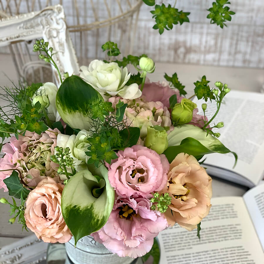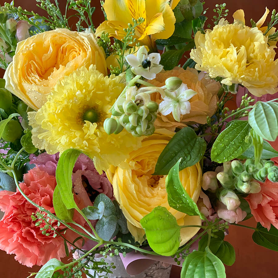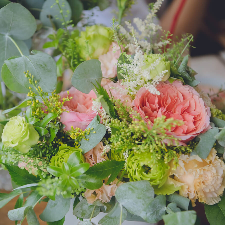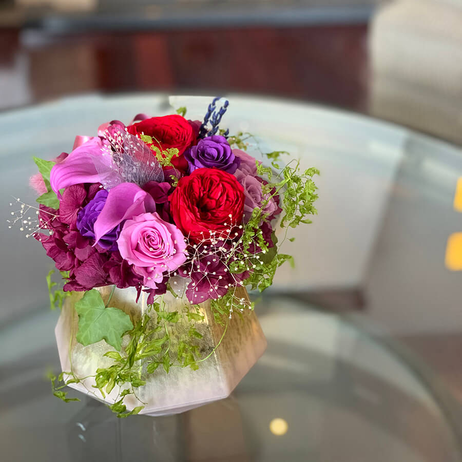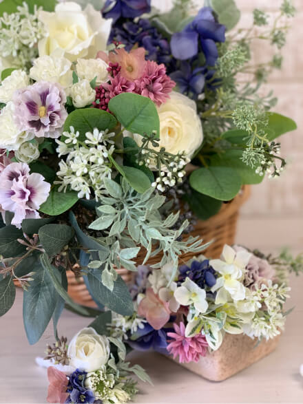 ヨーロッパスタイルの花選びと配色でアレンジメントをご提案いたします。